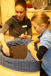 „Ergotherapie leitet sich vom griechischen Wort ergon ab, was so viel bedeutet wie Werk, Tätigkeit, Handlung oder Aktivität“, erläutert Ruth Koch, die die Abteilung seit 2017 leitet. Selbstständiges Handeln sei so etwas wie ein Grundbedürfnis des Menschen und wichtig, um für die eigene Lebensgrundlage zu sorgen. Bei Funktionseinschränkungen ist das Ziel der Ergotherapie, dass Menschen ihre Tätigkeiten (wieder) möglichst selbstständig ausüben können und ihre Teilhabe am Leben zurück erlangen. Ruth Koch: „Die Patienten definieren jeweils ihr Ziel, was sie erreichen wollen, und wir schauen, welcher Weg individuell passend ist. Das macht die Arbeit sehr spannend, weil viele Wege zum Ziel führen können.“