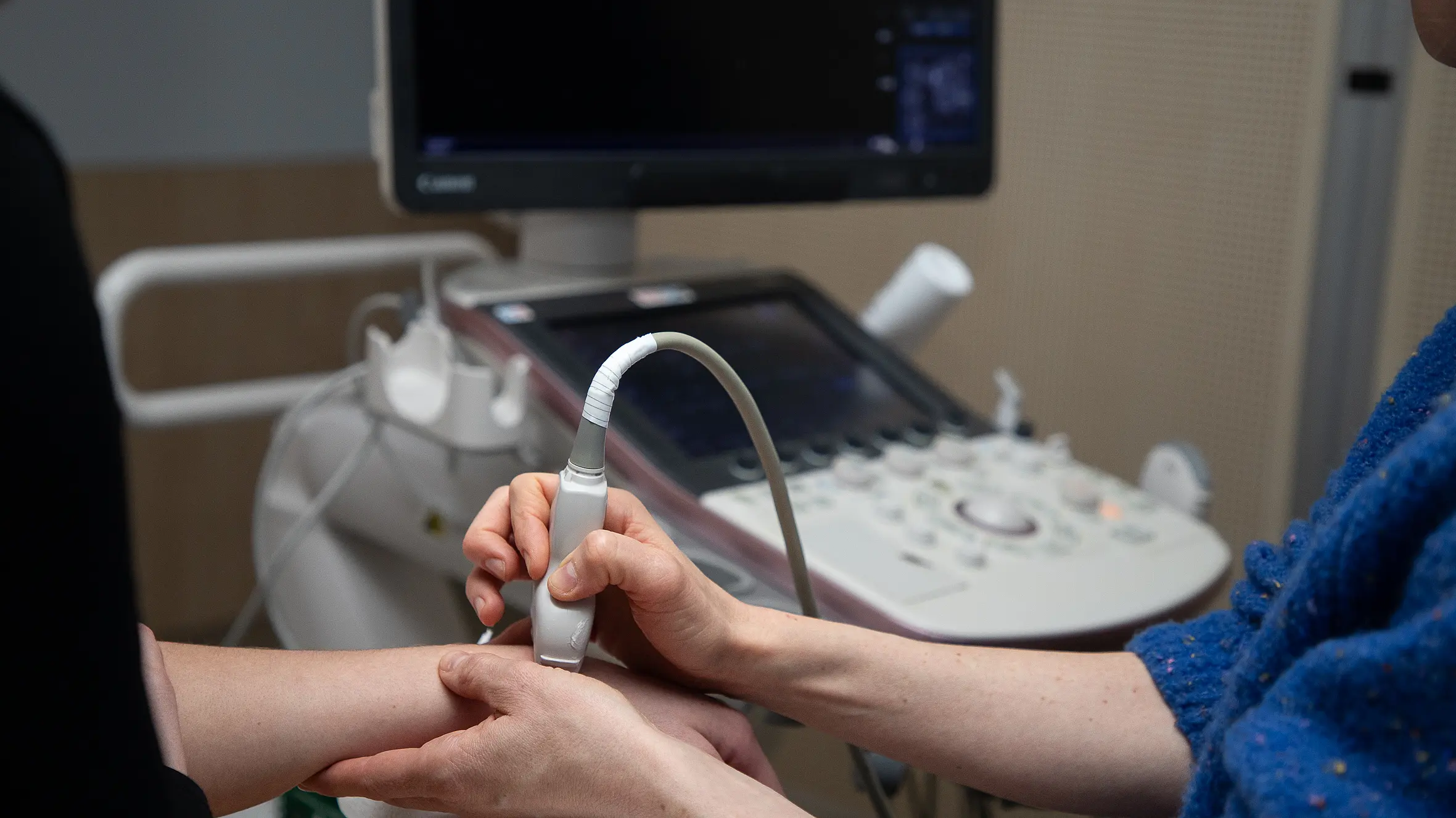 Drei ganze Tage haben sich knapp 30 Ärztinnen und Ärzte zu einem Aufbaukurs zum Thema Gelenksonografie zusammengefunden. Mehrere Kinder und Jugendliche ließen für die Fortbildungszwecke ihre Gelenke schallen, darunter Knie, Schultern und Finger. Den teilnehmenden Mediziner:innen, die aus ganz Deutschland und Österreich nach Sendenhorst angereist waren, standen dafür Ultraschallgeräte im Seminarraum und in der Ambulanz der Kinder- und Jugendrheumatologie zur Verfügung. Für den theoretischen Rahmen waren die Referierenden und DEGUM Seminarleiter PD Dr. Windschall, Chefarzt der Klinik für kinder- und Jugendrheumatologie und Tagungsleitung, verantwortlich. Auch in den Pausen waren viele Fachgespräche zwischen den Teilnehmenden zu hören: „Kollegiale Begegnungen und persönlicher Austausch sind neben den Fortbildungsinhalten ein ganz wichtiger Teil unserer Kurse. Für alle waren es interessante und lehrreiche Tage“, resümiert PD Dr. Windschall nach Abschluss des Aufbaukurses zufrieden.